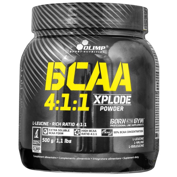 Olimp BCAA Xplode Powder 4:1:1 - jego formuła wolna jest od jakichkolwiek zbędnych dodatków i wypełniaczy. Zawiera wyłącznie najwyższej jakości aminokwasy rozgałęzione BCAA 4:1:1 (l-leucynę, l-izoleucynę oraz l-walinę). Wyróżnia się ponadto dobrą rozpuszczalnością i ciekawym smakiem.