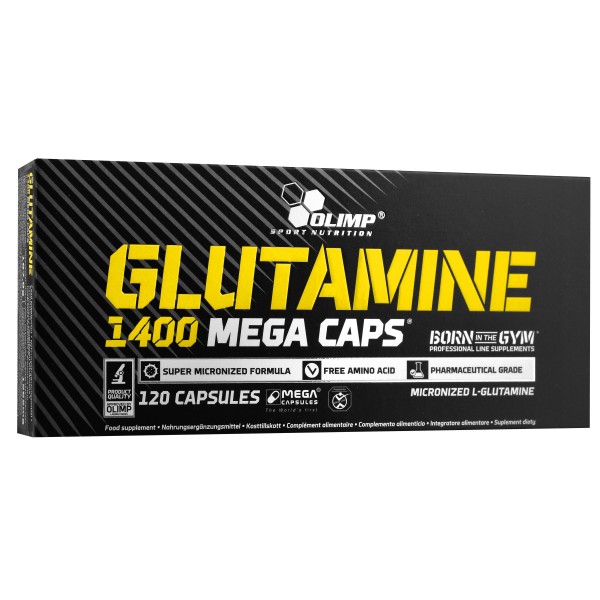 Olimp Glutamine 1400 Mega Caps - wysokiej jakości preparat oparty o 100% czystą l-glutaminę. Każda porcja dostarcza do organizmu jej uderzającą dawkę rzędu 4200mg, co jest jednym z najlepszych wyników na rynku. Wyróżnia się ona farmaceutyczną jakością oraz wysokim stopniem mikronizacji (mikrorozdrobnienia), co przekłada się chociażby na jej przyswajalność. Jest to ciekawy aminokwas, który wykazuje zarówno działanie antykataboliczne, jak i pro anaboliczne. Stanowi bardzo dużą część puli wszystkich aminokwasów w mięśniach, co stawia ją na bardzo wysokiej pozycji. Jest to równocześnie bardzo kontrowersyjny składnik, który cieszy się zarówno bardzo pozytywnymi opiniami, jak i spotyka się z krytyką.