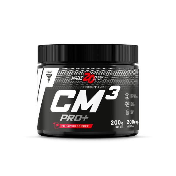 Trec CM3 PRO+ - polecany jest wszystkim sportowcom planującym udany cykl na kreatynie. Sprawdzi się za każdym razem. Odpowiednio prowadzona suplementacja* sprzyja zwiększeniu wydolności fizycznej w przypadku następujących po sobie krótkich, bardzo intensywnych ćwiczeń fizycznych.