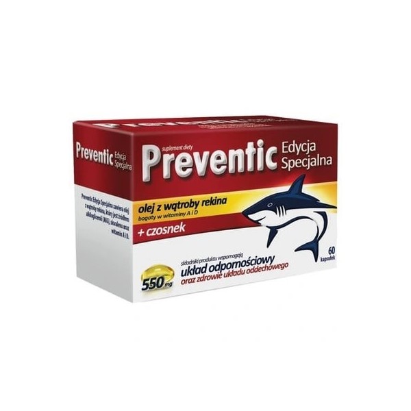 Preventic 550mg Edycja Specjalna - doskonała propozycja dla osób poszukujących sposobu na naturalne i kompleksowe wzmocnienie organizmu i jego odporności. Sprawdzi się w ramach profilaktyki przez cały rok, chociaż jest stosowany także doraźnie w okresach jesienno-zimowych, kiedy to odporność zwykle podupada.