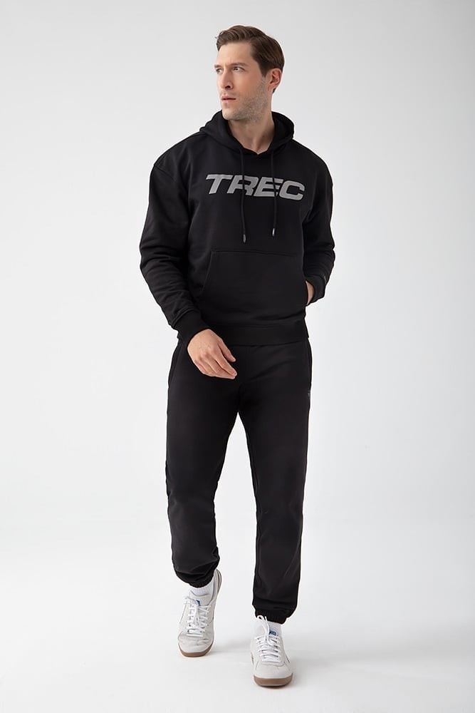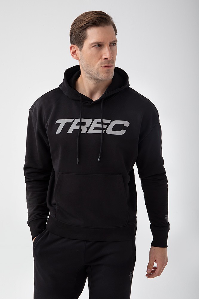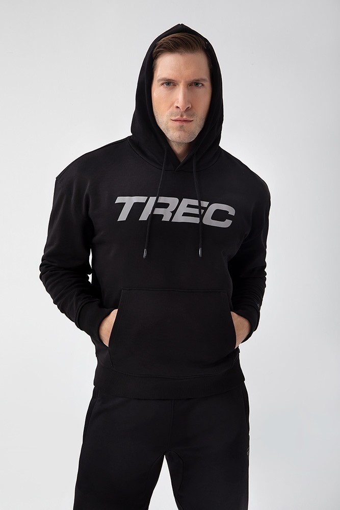 Trec Wear NOWOŚĆ Czarna bluza męska z kapturem TW BASIC HOODIE 185 M BLACK