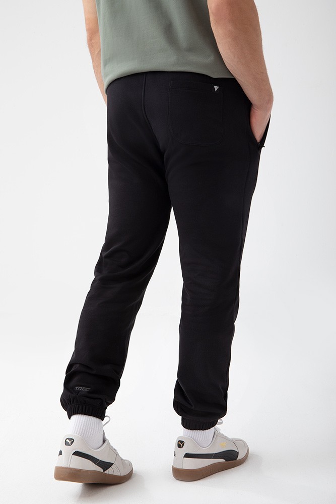 Trec Wear Basic Pants 182 to wygodne, czarne spodnie dresowe wykonane z materiału o gramaturze 380 g/m2, stanowiącego połączenie odpornego na uszkodzenia poliestru oraz oddychającej bawełny. Idealnie nadają się do każdej aktywności fizycznej, ale także do codziennego noszenia.