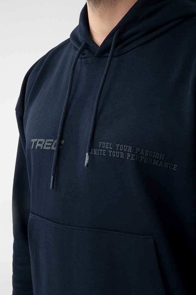 Przedstawiamy Trec Wear Basic Hoodie 184 - męską granatową bluzę boxy z kapturem która zapewnia wysoki komfort noszenia oraz charakteryzuje się dużą wytrzymałością.