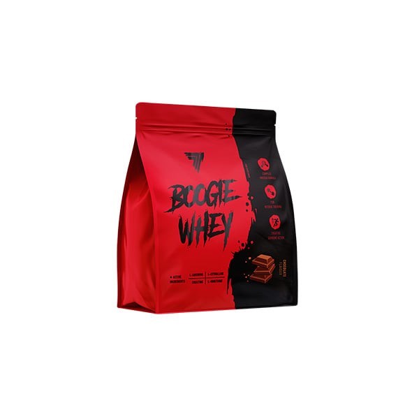 Trec Boogiewhey - znakomita odżywka wysokobiałkowa stworzona w oparciu o pełnowartościowe proteiny pochodzące z koncentratu serwatki oraz koncentratu białek mleka (WPC + MPC). Ponadto każda porcja charakteryzuje się bezproblemową rozpuszczalnością, wyjątkowo udanymi smakami, ale i wysoką wartością odżywczą, w tym także biologiczną. Warto podkreślić obecność kilku ciekawych dodatków, takich jak kreatyna, cytrulina oraz AAKG (alfa-ketoglutaran l-argininy).