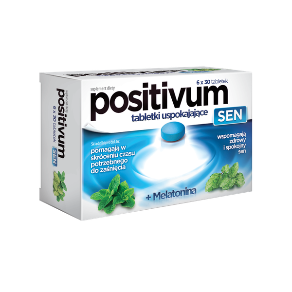 Aflofarm Positivum Sen 180tab. – znakomity produkt, którego regularna suplementacja pomaga w poprawie jakości snu, co z pewnością wpłynie pozytywnie na Twoje samopoczucie każdego poranka. Tajemnica jego skuteczności tkwi w naturalnym składzie, w którym znajdziesz wyciągi z ziela melisy i szyszek chmielu oraz melatoninę sprzyjającą skróceniu czasu niezbędnego na zaśnięcie. Preparat występuje w łatwych do połknięcia tabletkach. Sięgnij po propozycję marki Aflofarm już dziś!