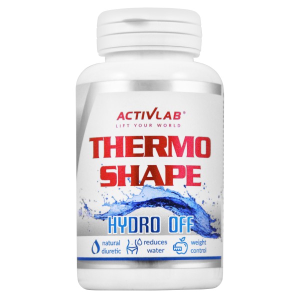 Activlab Thermo Shape Hydro Off – znakomity wybór dla osób odchudzających się, którego zaletą jest jednoczesne działanie termogeniczne, stymulacje przemian metabolicznych, jak i wsparcie w usunięciu zbędnej wody podskórnej. Zawiera bowiem naturalne diuretyki, których dodatkową zaletą jest wsparcie procesu detoksykacji organizmu (usuwanie szkodliwych produktów przemiany materii). Pomaga w ograniczeniu apetytu oraz zwiększa wydatkowanie energii w postaci ciepła.