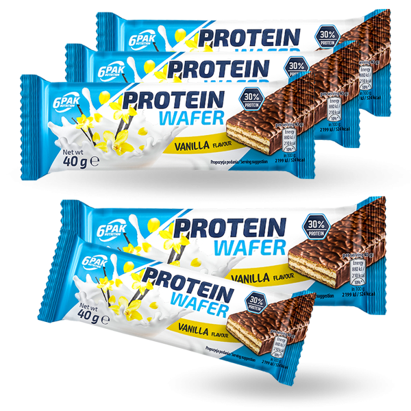 6PAK Nutrition Protein Wafer - nowa odsłona klasycznego wafelka pokrytego czekoladą - zastanawiasz się o co chodzi? Jak zwykle "diabeł tkwi w szczegółach". Wygląda normalnie, ale składem znacząco odbiega od klasycznych słodyczy. Wyróżnia się znacznie zwiększoną koncentracją białka pochodzącego z dwóch pełnowartościowych źródeł odzwierzęcych, takich jak kazeina oraz WPC (koncentrat białek serwatki). Kolejną zaletą jest jego relatywnie niewielki rozmiar, zatem zabranie go ze sobą w drogę nie jest żadnym problemem.